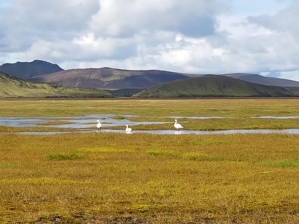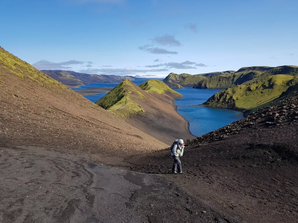 Une journée haute en couleur…le chemin serpente entre collines et larges deltas aux inévitables petits gués ! Avec un peu d’énergie, la journée se termine par l’ascension de la Blanukur. Descente sur Landmanalaugar et ses bains chauds. Nuit en refuge, en dortoir.