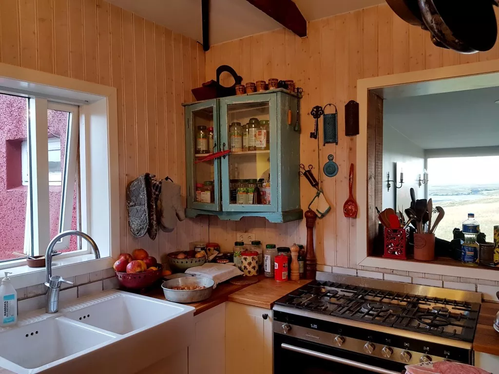 A Kerlingarfjoll et Holaskjol, nuits en refuge. Chambre de 2 à 4 personnes ou cottage de 6 personnes (2 personnes dorment sur un matelas par terre à Holaskjol). Eau courante et cuisine dans le refuge, mais toilettes en général à l’extérieur. Douche chaude payante (env.4€).
