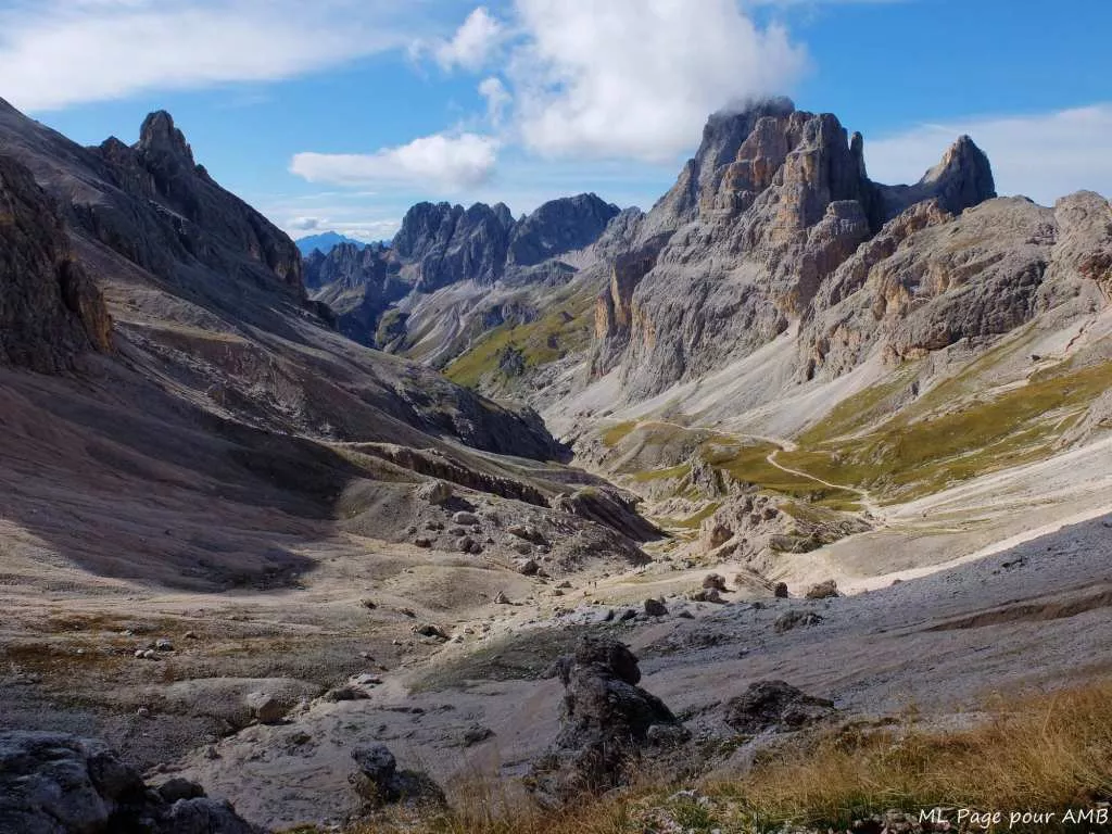 - Traversée de massifs au décor digne de film fantastique, Rosengarten, Sasso Lungo, Sciliar...