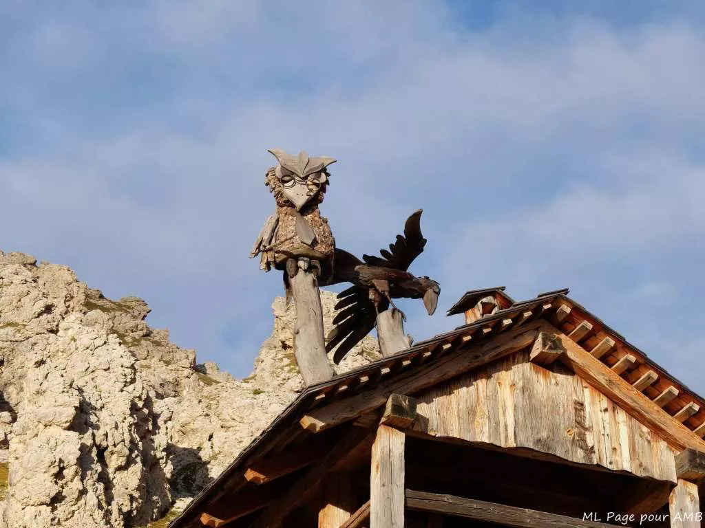 Depuis le refuge, l'itinéraire commence par rejoindre l'altiplano de Sciliar, avec la possibilité d'un aller-retour au sommet du Mont Petz afin de profiter d'une dernière vue à 360° sur les Dolomites de Bolzano. Le retour sur l'Alpe de Siusi se déroule ensuite avec une descente en douceur qui permet d'apprécier encore une fois le savoir-faire exceptionnel des Ladins dans l'aménagement des voies de circulation à travers leurs montagnes.