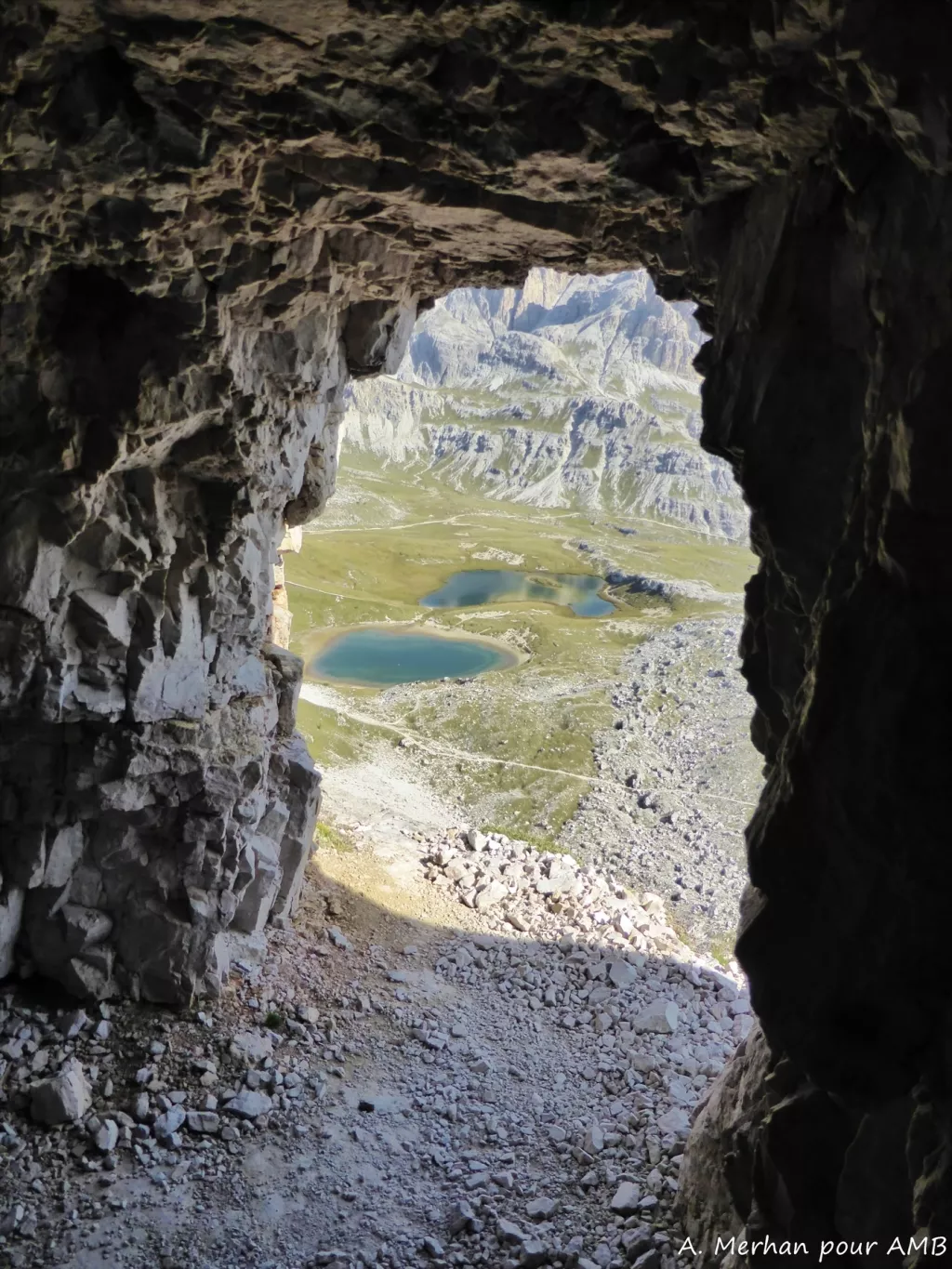 Traversée du vaste plateau karstique de Fanes, une curiosité géologique, avant de remonter à la fenêtre de Lech, à 2486m d’altitude, passage étroit entre deux faces imposantes. S’ensuit une superbe descente, impressionnante mais très bien aménagée, sur le petit lac de Lagacio et l’alpage de Scotoni. Nuit en refuge, avec les bagages.