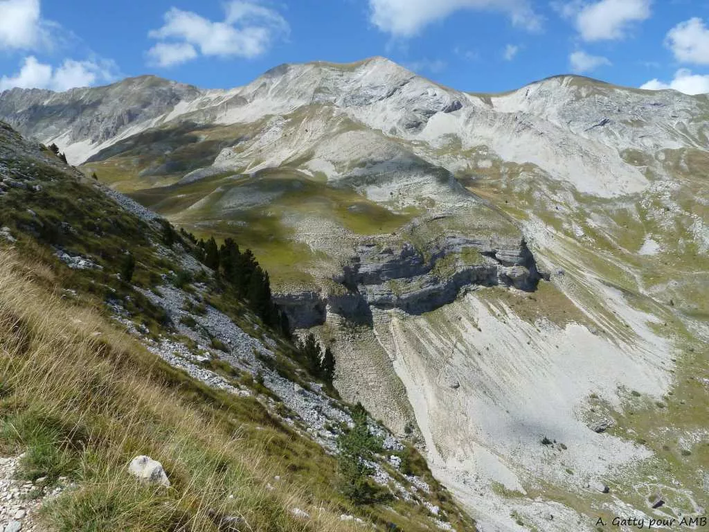 Bon sentier de montagne. Un ou deux passages escarpés pour l'ascension de la montagne de Bure.