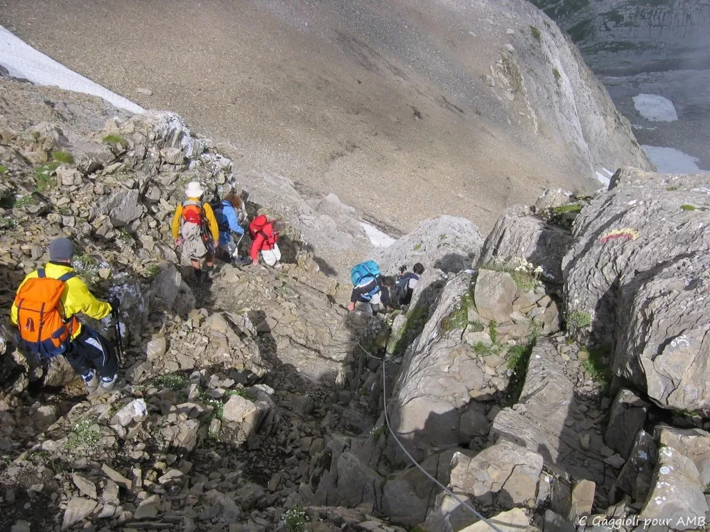Nombre de participants compris entre 6 et 14 personnes encadrés par un professionnel diplômé (accompagnateur en montagne). L'accompagnateur en montagne peut être amené à modifier le programme pour l'adapter au niveau des participants et/ou aux conditions naturelles. Il reste le seul décideur en dernier recours.