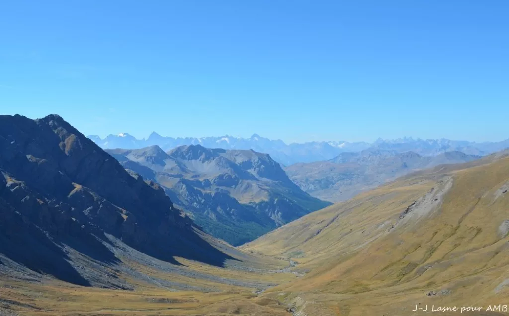 Au pied du massif culminant de la Haute-Ubaye, le Chambeyron (3412m), montée facile par le vallon du col Mary et sa multitude de lacs qui parsèment allègrement ces pâturages encore bien exploités. Du col, passage en Italie, dans le Piémont, pour rejoindre le Val Maira et le magnifique village de Chiappera.