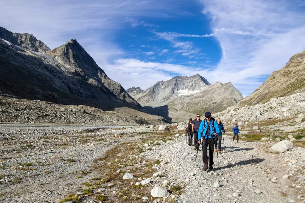 Le glacier d'Otemma est un des grands glacier du Valais et sa vallée est l'une des plus retirée des Alpes. Sa longueur fait 8 km, sa largeur 1 km. Remontée de ce glacier jusqu’au col de Charmotane (3049m), puis poursuite jusqu’à la cabane des Vignettes (3160 m).