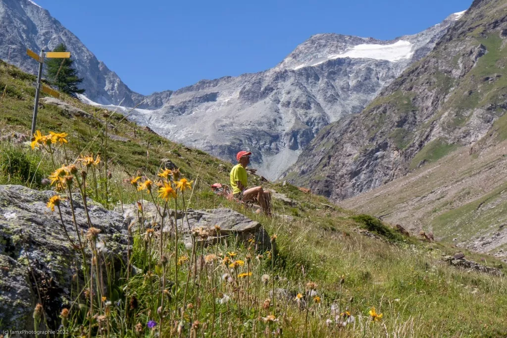Belle montée vers le Col de Valcournera à 3072 m, puis descente jusqu’au Lac de Cignana aux reflets et cascades extraordinaires, suivie d’une courte montée au col de Cignana (2445 m). Descente à Valtournenche, dévoilant doucement les sommets du Cervin et du Mont Rose.