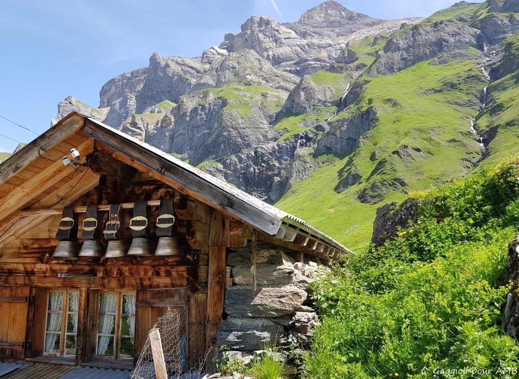 Depuis le refuge, montée au col de Schwarzgratli pour rejoindre le Wyssie Flue (2471m) et suivre la crête de l'Üschenegrat , entre les deux vallées sauvages de la Gastertal et de la Spittelmatte. Un petit aller-retour au sommet du Gällihore (2283m) pour profiter du splendide panorama et s'ensuit alors une longue descente entre vaste alpage, forêt sauvage et clairière bucolique ! Possibilité de descendre directement sur Kandersteg par les larges vallons de Spittelmatte et Waldhus. Nuit en gîte à Kandersteg.
