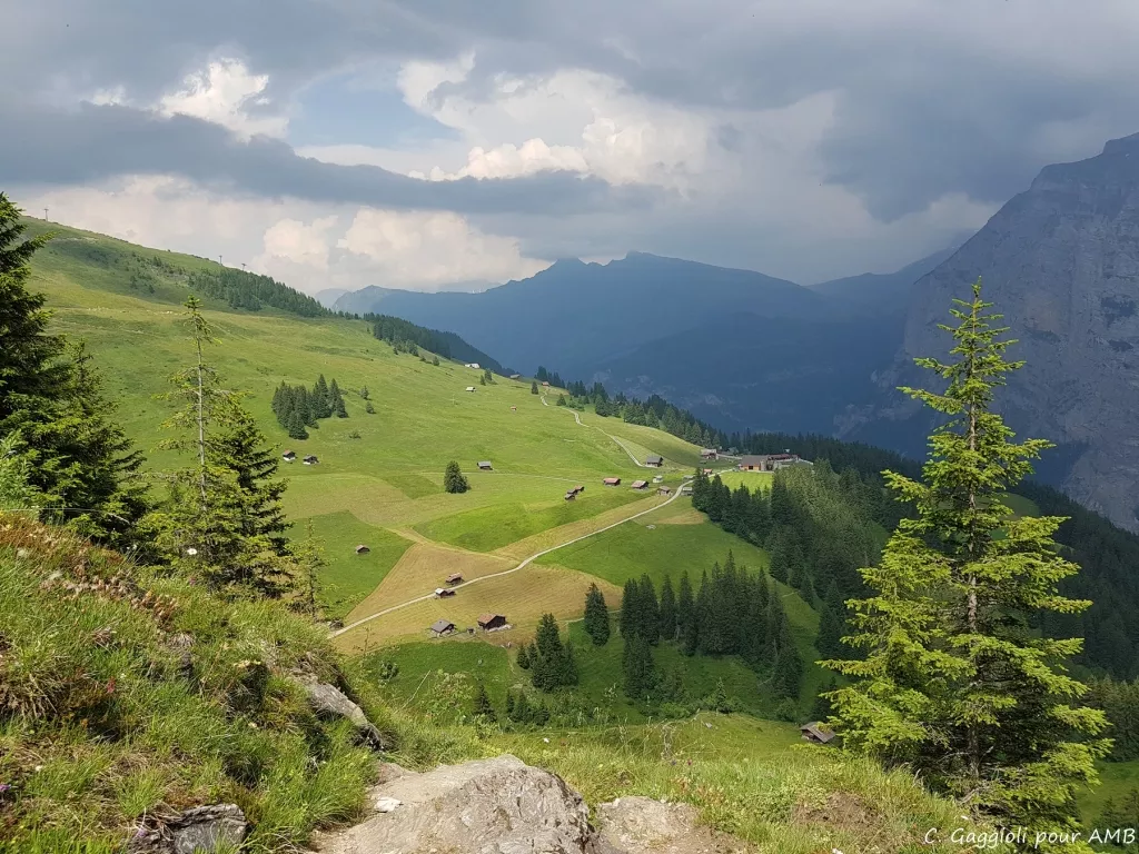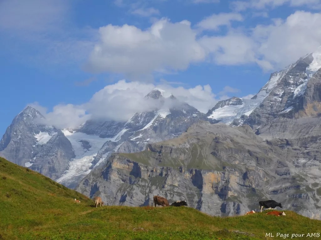 Etape splendide pour cette journée qui démarre dans l’impressionnante vallée de la Gamchi. Les prés laissent progressivement la place à l’ambiance minérale du col de Sefinafurgga (2612m) et l’ascension se termine dans un monde de glaciers et de haute montagne. Panorama extraordinaire sur les sommets emblématiques de la Jungfrau, de l’Eiger et du Mönch qui se dévoilent enfin dans leur totalité et qui accompagnent toute la descente sur Gimmelwald, très beau vieux village d'alpage. Nuit en gîte à Gimmelwald ou Mürren (version confort) sans les bagages.