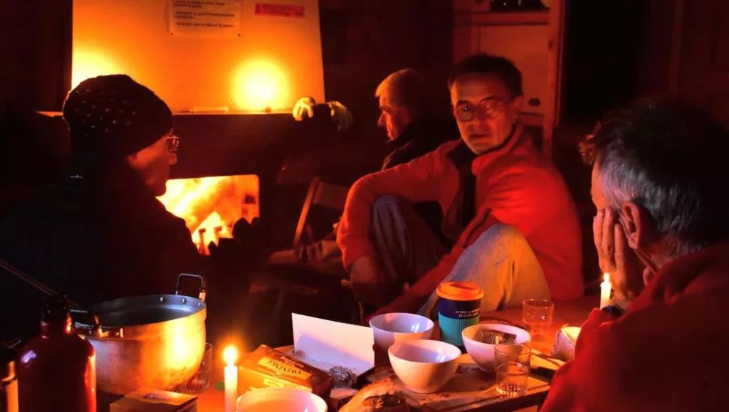 Dans ces refuges non gardés, rustiques, mais chaleureux, les toilettes sont à l’extérieur à Pré Grandu, dans la nature à Chaumailloux, et il faut faire fondre la neige ou transporter de l’eau pour se faire à manger et éventuellement faire un brin de toilette ! Les lingettes sont aussi un bon compromis. La solidarité entre tous les membres du groupe est un gage de réussite. Quand nous arrivons aux refuges, il faut faire du feu (le bois est sur place) pour se chauffer, mais le refuge est assez petit et très vite chaud.