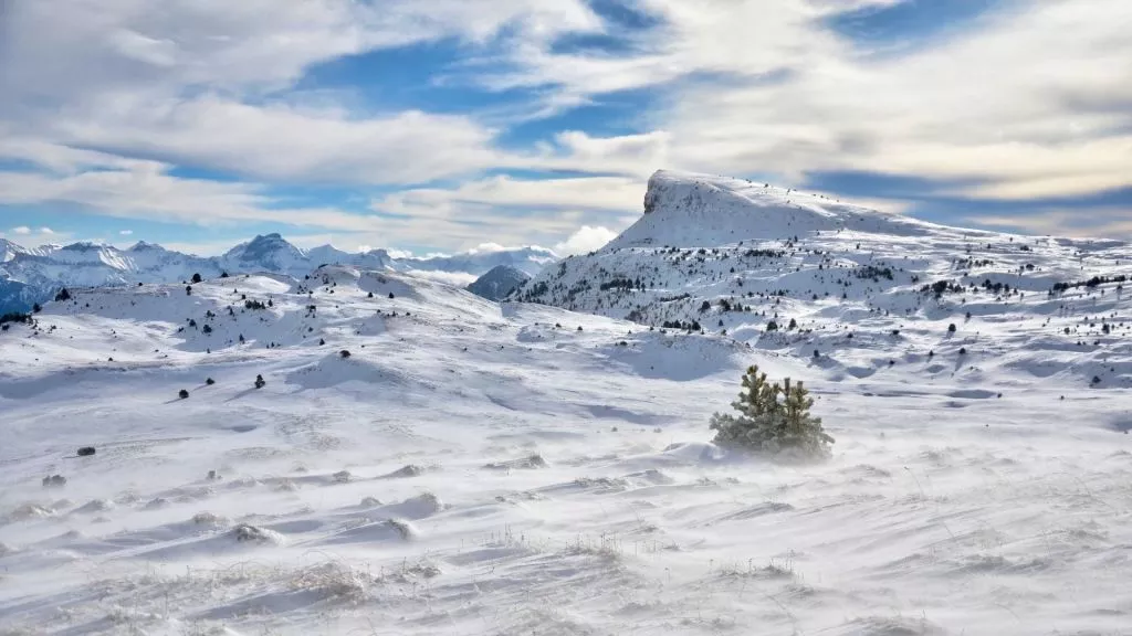 Très belle balade sous le Grand Veymont (sommet culminant du Vercors : 2341m), en plein coeur de la plus grande Réserve Naturelle de France : paysages d’exception. Au retour, perfectionnement des igloos si besoin.