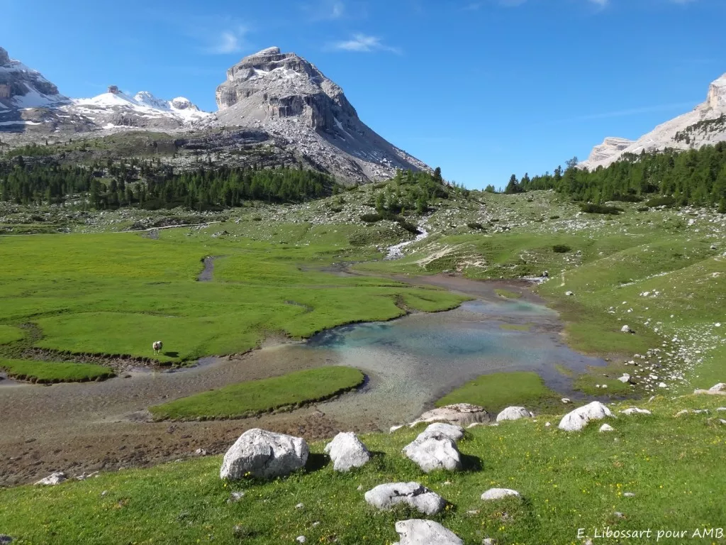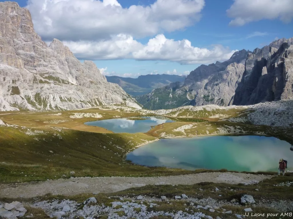 Pour beaucoup de montagnards (et pas uniquement les Italiens...), les Dolomites sont les plus belles montagnes du monde. Pas moins ! Elles sont certainement parmi les plus insolites et quiconque ayant aperçu un jour ces tours solennelles, ces ruines crénelées, ces décors lunaires s'éboulant parfois jusqu'à nos pieds, ne pourra les oublier. Selon la saison choisie, vous pourrez admirer les variations de couleurs sur les parois, la flore si typique des montagnes dites calcaires (bien que la roche essentielle du massif, la dolomie, ne soit pas à proprement parler, du calcaire), et bien sûr la faune montagnarde habituelle à ces altitudes : marmottes, chamois, bouquetins, aigles royaux et faucons, ou plus modestement, traquets motteux et une quantité prodigieuse d'insectes adaptés à ces conditions rudes.