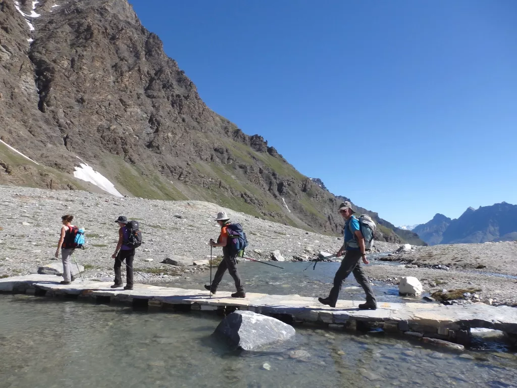 Court transfert en bus de vallée pour Pont, départ de votre randonnée. La montée par le col Grand Collet représente un bon dénivelé mais un c'est un col assez sauvage qui vaut un petit détour...Chamois ou bouquetins sont parfois encore visibles le matin. On suit le balisage pour l'itinéraire, pour arriver au vaste col à 2832m. Descente sur la belle plaine du Nivolet, puis le long des méandres de la rivière. On rejoint la Croix du Nivolet passée la veille, puis enfin Pont, terme de la randonnée.