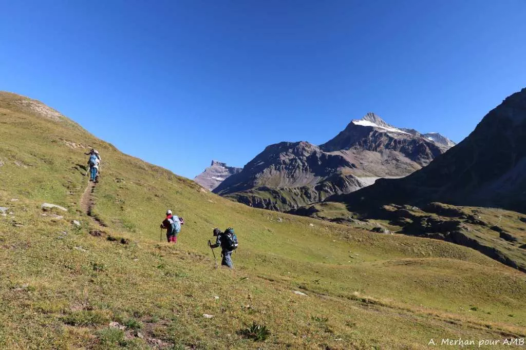 L'occasion de parcourir ces terres de contrastes, des alpages verdoyants du Val d'Ollomont aux pentes gelées du glacier de Corbassière, en passant bien sûr par le mythique Col du Grand Saint-Bernard et son hospice millénaire. Une semaine en balcon, de cols en sommets et de lacs en alpages, au coeur d'une montagne brute et paisible.