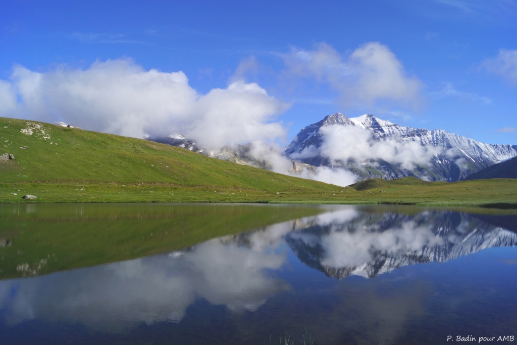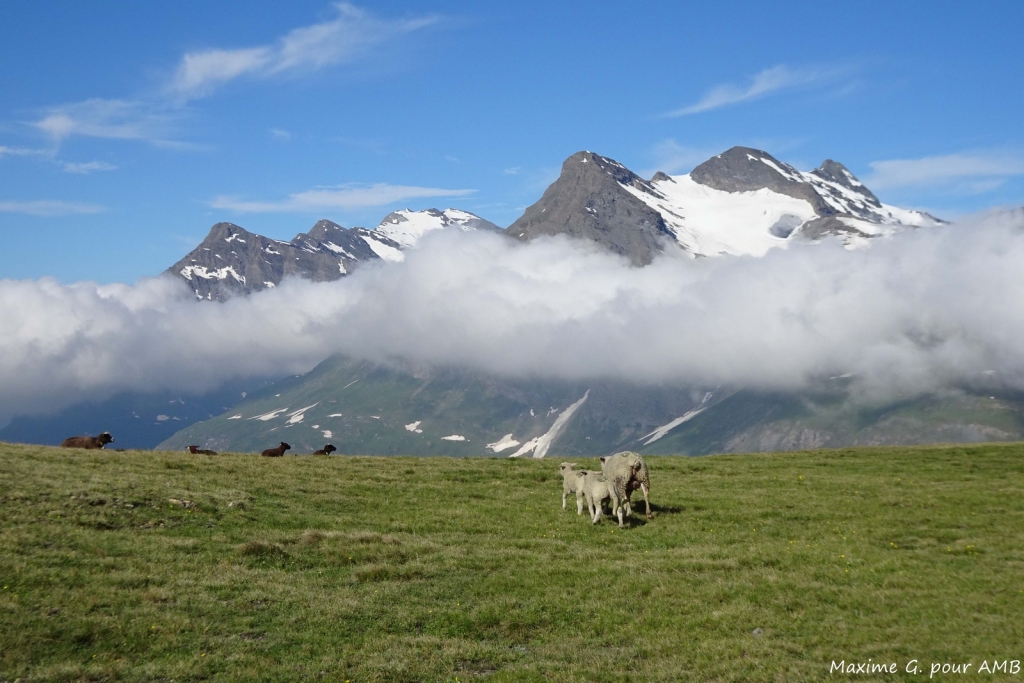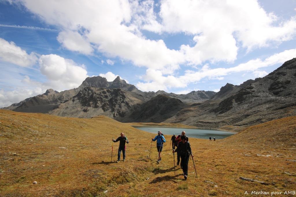 La randonnée démarre à Termignon, le long du Doron de Chavière, par une montée un peu raide entre prés et forêt. L’effort trouve sa formidable récompense avec le spectacle qui se dévoile à l’arrivée sur l’alpage : vaste panorama, lacs turquoises dans lesquelles se reflètent les sommets enneigés, chalets de pierre et quelques Tarines pour le fond sonore ! Installation pour deux nuits en refuge (2350m), en chambre.