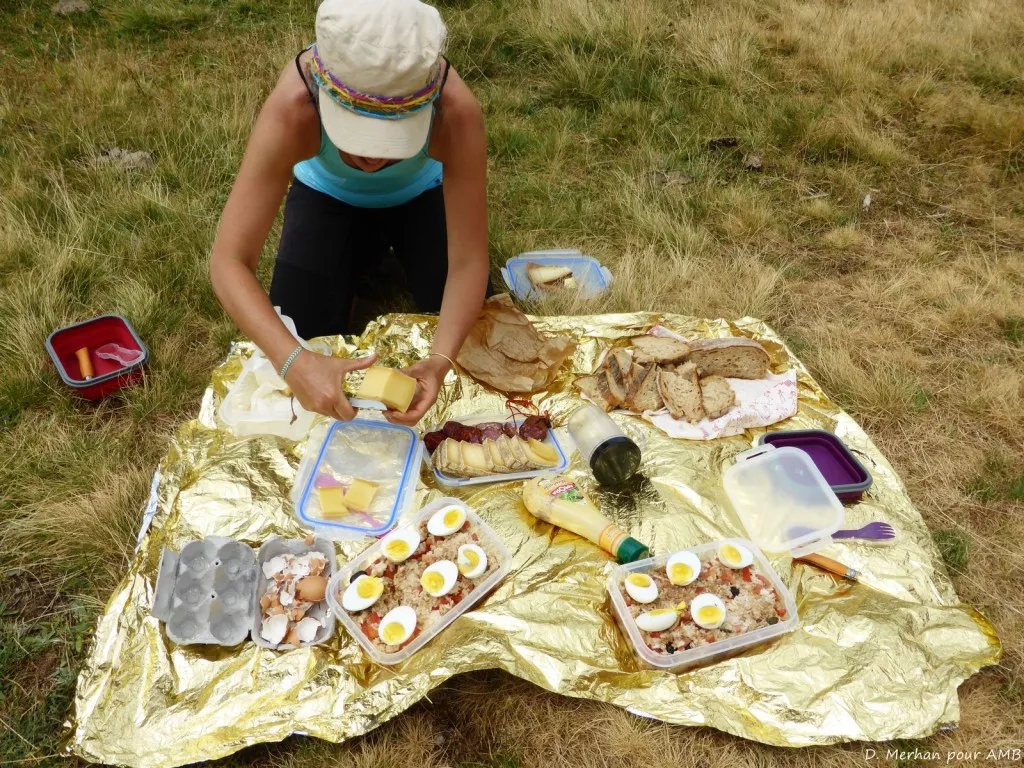 Pour le midi, votre accompagnateur prépare un pique-nique généralement composé de salades variées et de produits régionaux.