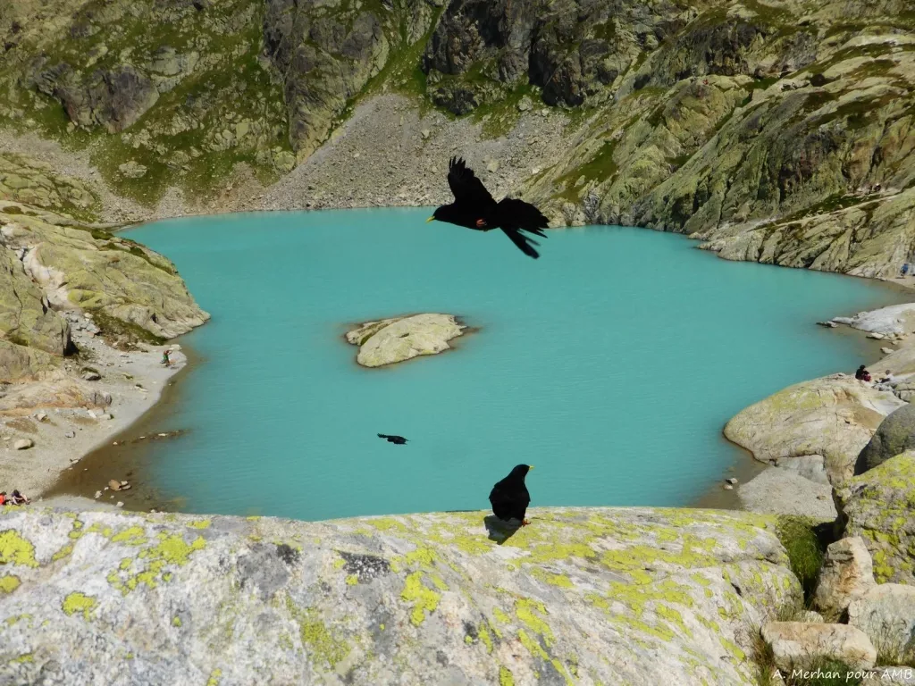 Montée par le téléphérique de la Flégère sur les balcons du Mont Blanc pour atteindre le lac Blanc à 2300m. Descente au col des Montets et à la maison de la réserve des Aiguilles Rouges, puis en direction de Montroc et du village du Tour. Nuit en gîte d’étape.