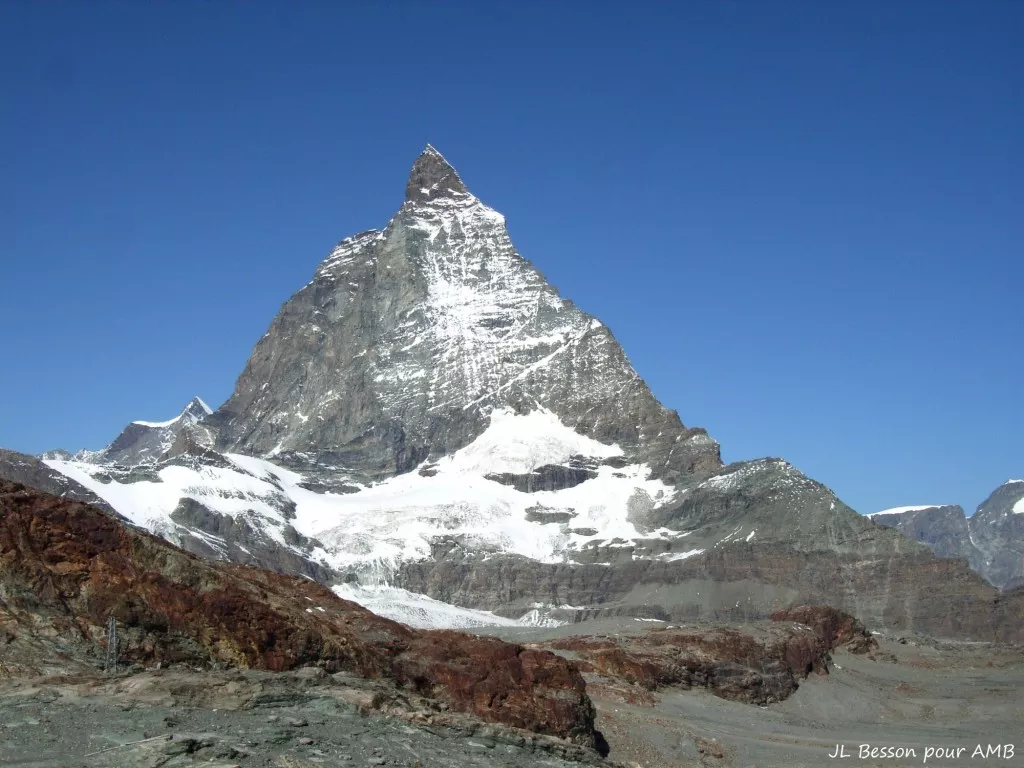 Une journée finale pour relier le Val d'Ayas et l'imposant Matterhorn ! L'itinéraire se poursuit au fond du vallon pour rejoindre le col et les lacs delle Cime Bianche, sur les hauteurs de Cervinia. La suite du voyage se déroule en empruntant les remontées mécaniques du Matterhorn Paradise. Traversée majestueuse entre les sommets mythiques du Mont Rose au Cervin, avec une dernière pause au Klein Matterhorn, à 3883m !