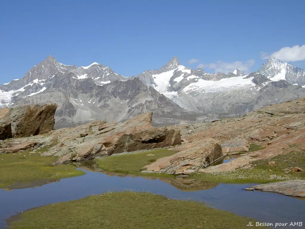- Le large panorama sur tous les 4000 des Alpes valaisannes