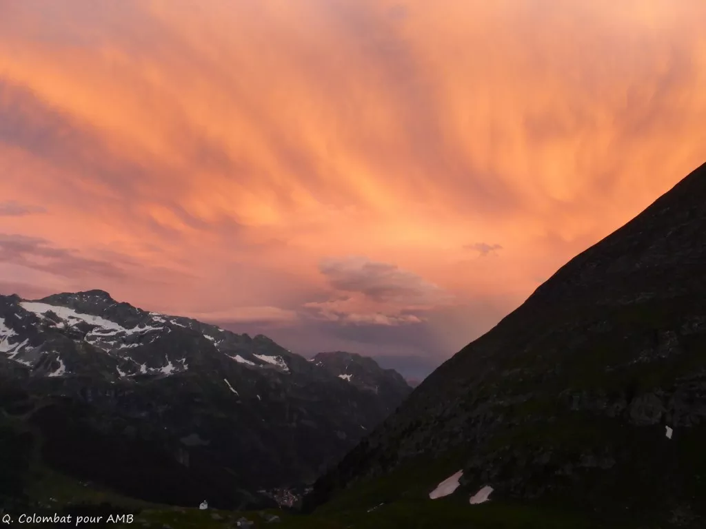 Transfert en bus pour le barrage de Mattmark. Montée par le chemin historique du Col de Monte Moro (2868 m), longeant la face est du Mont Rose. Descente vers Macugnaga par le sentier sous la gigantesque face sud. Nuit en refuge.