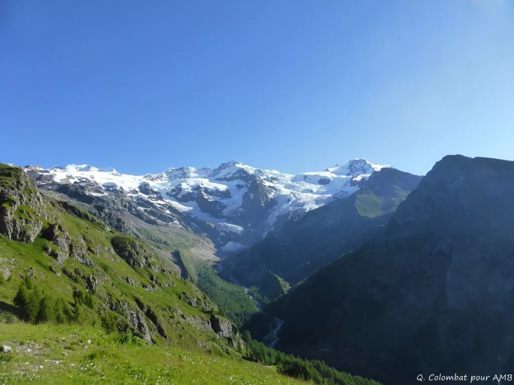Situé au fond de la vallée de Zermatt, le Mont Rose tire son nom du patois Valdotain "roese" signifiant "glace". Du haut de ses 4634 mètres, il déroule de gigantesques glaciers, offrant ainsi un paysage de démesure. De nombreuses hautes vallées conduisent au pied du géant, qui portent encore les traces du passage des Walsers, ancêtres nomades des Valaisans. Après plusieurs jours de marche, rythmés par le passage des grands cols, nous vous proposons une incursion dans le domaine glaciaire avec l’ascension de la Pointe Gnifetti à 4554 m, esthétique et facile ; point d’orgue de ce séjour.