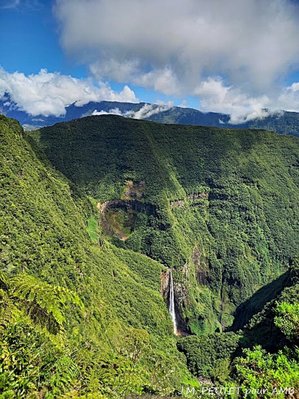 - Les canyons et ravines du cirque de Cilaos surmonté du point culminant de la Réunion