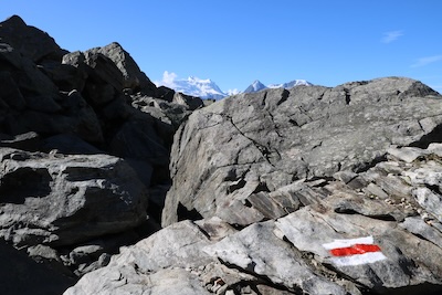 - Côté Suisse, vous trouvez deux types de marquage : les balises jaunes indiquent des sentiers sans difficulté technique, les balises en blanc/rouge/blanc indiquent des sentiers pouvant comporter des passages exposés et techniques
