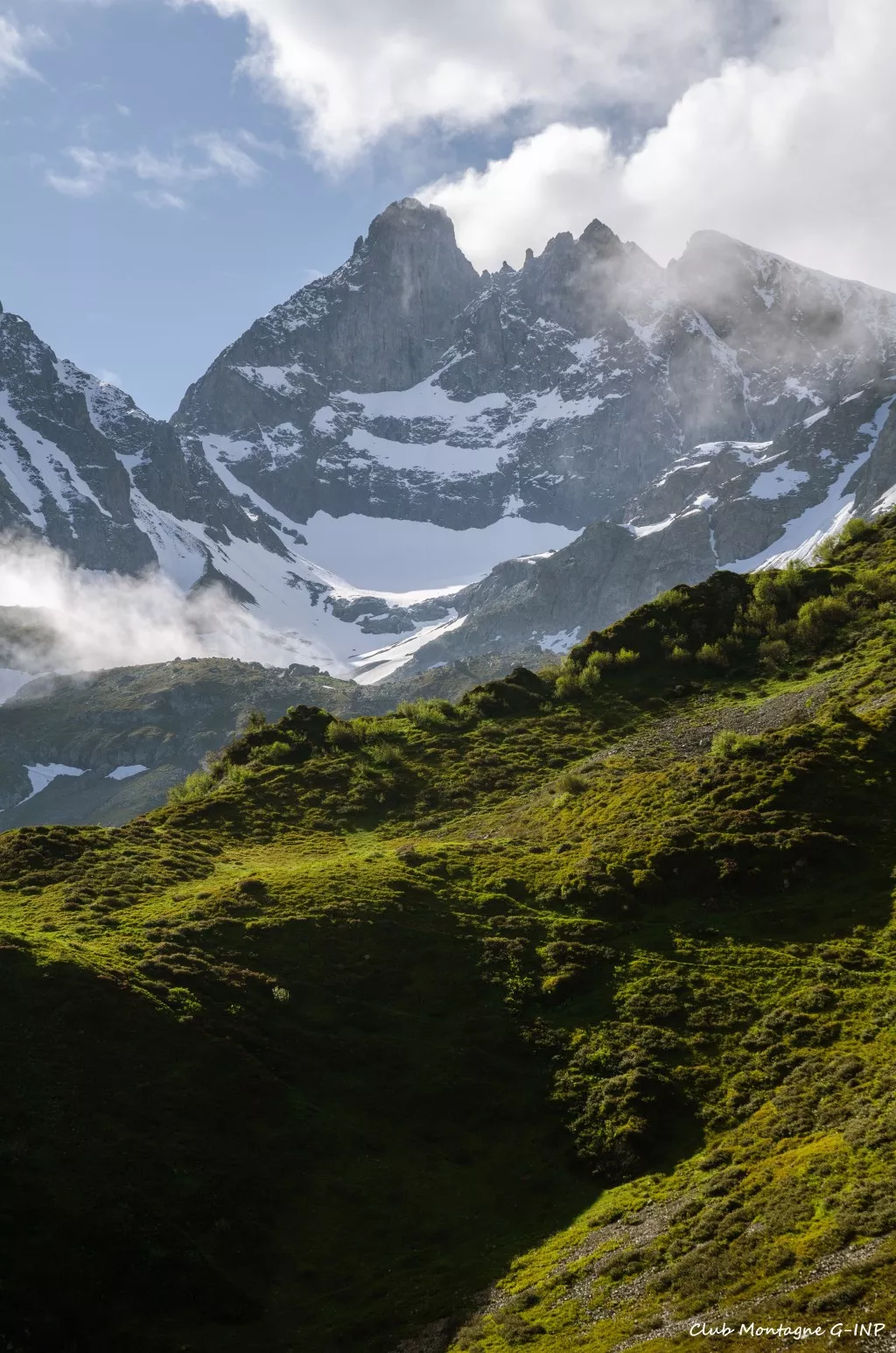 The ''Bella Donna'' is one of the four massifs surrounding Grenoble. Contrary to its neighbours who swallow rainwater in their limestone entrails, Belledonne exposes it on its granitic reliefs through torrents, waterfalls and altitude lakes. The water trickles down and, in some corners of the mountain, small glaciers and snow still hide and supply it for most of the summer. In this area, an important fauna has developed (ibex, chamois, birds of prey...) which find all what they need as well as numerous human activities (pastoral, hydroelectric and touristic). In spite of its austere faces which dominate Grenoble, it is a lively massif which is well worth a short 4-day excursion from hut to hut.