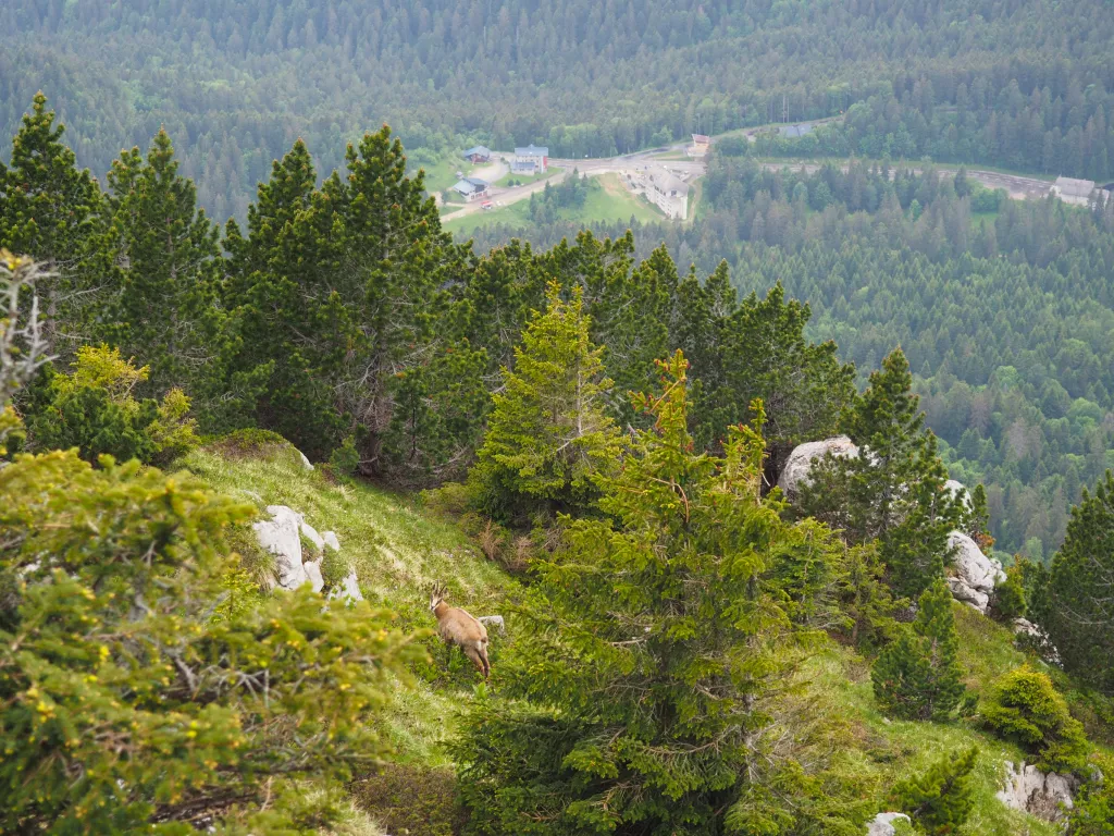 Une montée permet de rejoindre les dalles du Charmant Som, petit sommet central de la Chartreuse. Le sentier traverse l’alpage puis continue en crête avant de descendre en forêt jusqu'au Col de Porte. Possibilité de continuer la crête jusqu'au joli sommet pointu de la Pinéa.