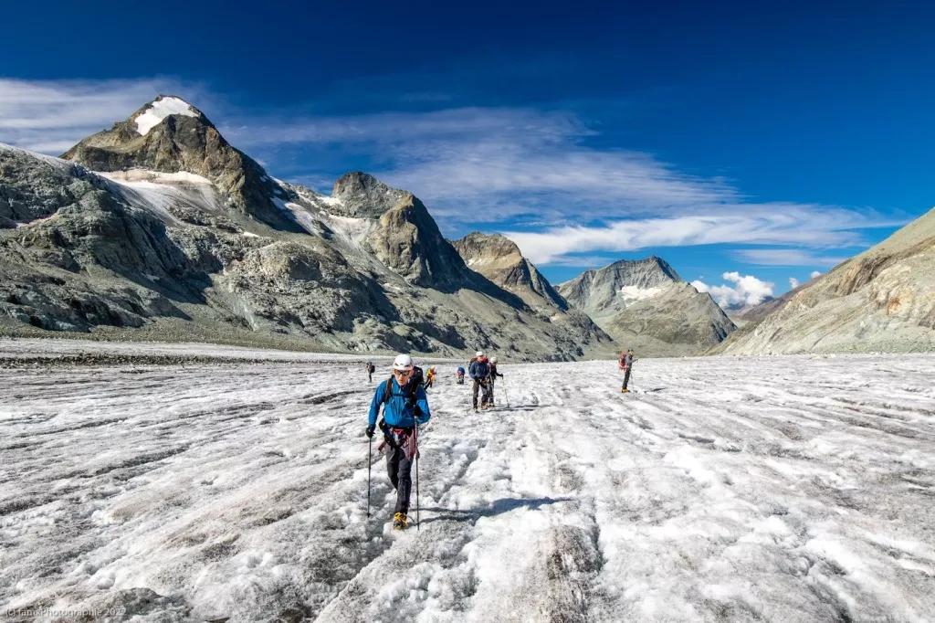 As a prerequisite for all our discovery trips, such as glacier trekking, or for learning mountaineering, you need to be a good hiker, including off-piste, and be used to walking 8 hours a day. A sporty background is recommended and a taste for effort is essential. It is necessary to be well rested and fit for any high mountain tour.