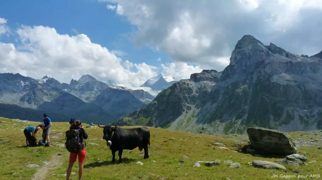 Climb to the Augstbordpass (2900m) and descent to the village of Saint Niklaus. With a little luck, it is possible to see many chamois in this area. Descent by cable car and transfer to Zermatt. Night in a gîte or a hotel.