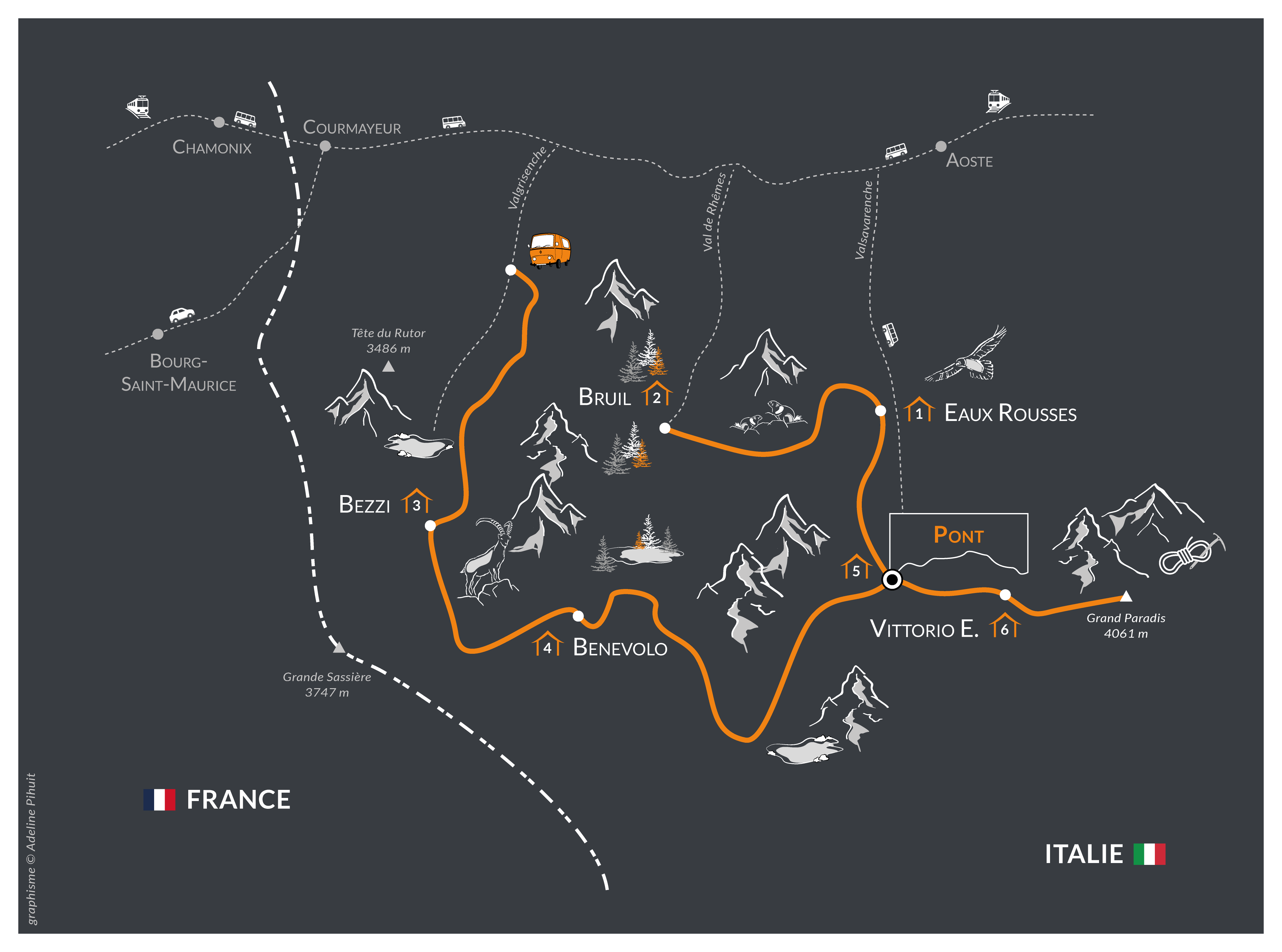 - 1 road book with all the necessary information for the hike