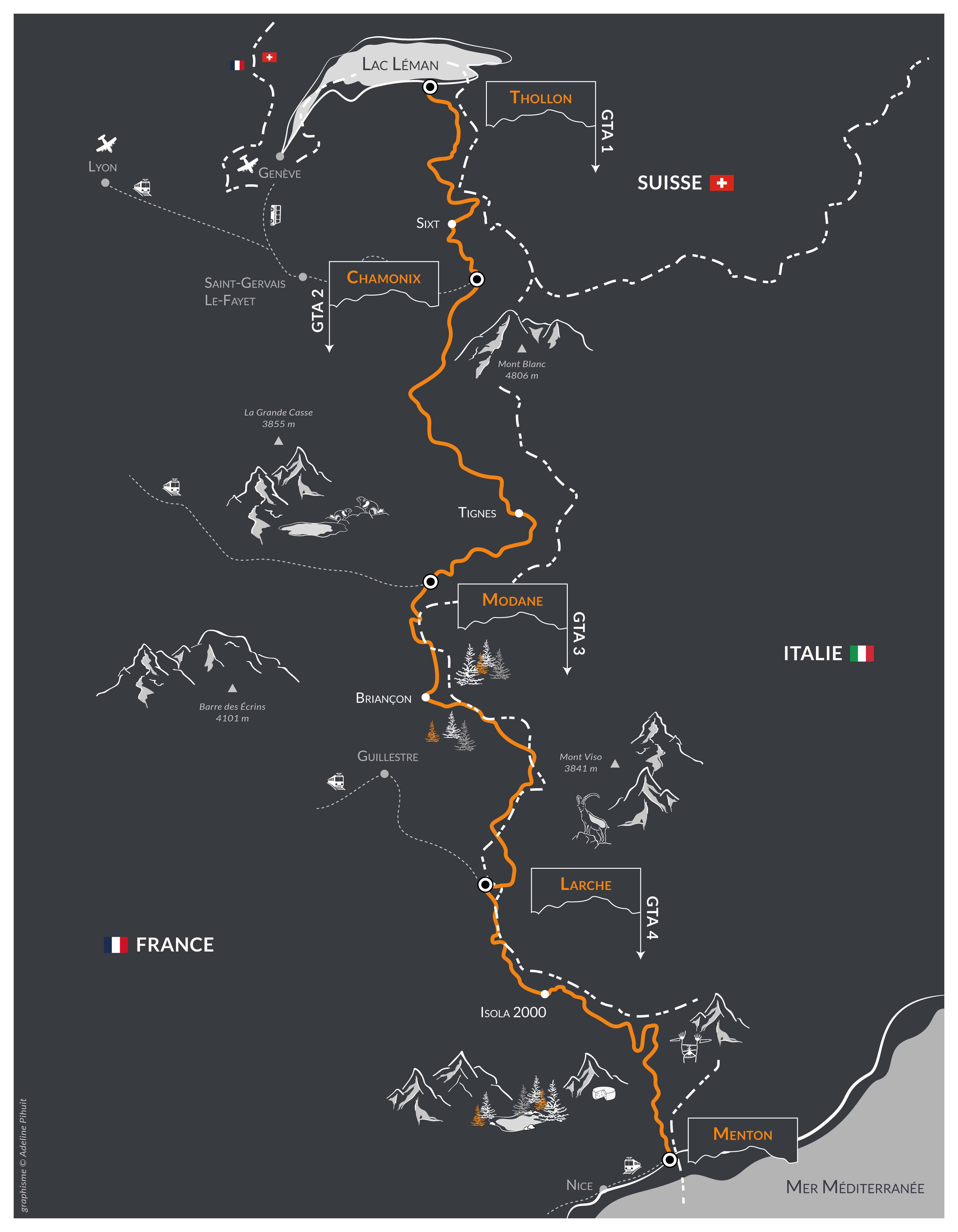Cross the Alps meeting people and mountains... The Grande Traversée des Alpes (GTA) between Lake Geneva and the Mediterranean is a long-distance hike. The opportunity to take a long break and put dail...