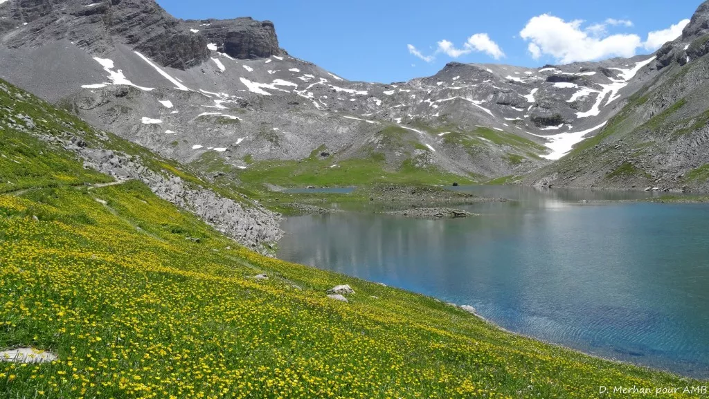 Going up along the Italian border, the valley of Bouchouse is a biotope reserve. Passage to Egorgeou and Foréant lakes and then to "Col Vieux" (2806m) to reach "Col de Chamoussière". Descent into this wide valley of the "Aigue Blanche" to reach the refuge de la Blanche by the lake, nestled at the foot of the "Tête des Toilies". Night without baggage.