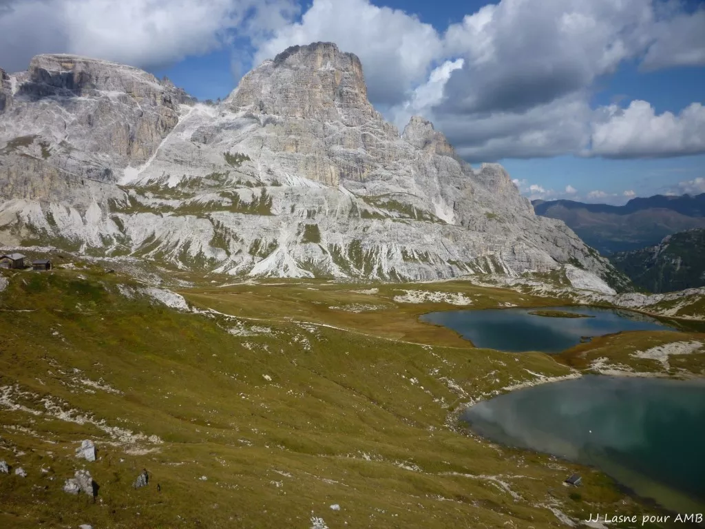 Cross the Fanes plateau surrounded by dolomitic cliffs. Climb to Forcella de Lech, a window into the mountains that open onto a mythical descent above the beautiful turquoise lake of Lagazuoi and the Scotoni pasture. One more effort to cross the Valparola pass. Possibility of a shorter route through the Locia pass. Night in a refuge on the pass.