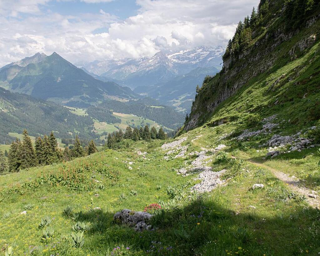 This alpine hike leads to Lake Taney, nestled in the heart of a preserved nature reserve overlooking the Rhône Valley. From the village of Miex, accessible by bus, the route crosses forests and mountain pastures to the lake, surrounded by flower-filled meadows and dominated by the peaks of Les Jumelles and Le Grammont. The return journey takes you via the Taney mountain pasture and the Taney pass, before a winding descent through the forest, offering beautiful views of Lake Geneva.