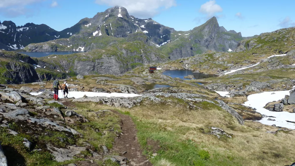 Head to the far north of the island of Vestvågøya to climb the highest point of the stay! Located on a peninsula, Haveren (808m) looks like an impregnable fortress above the waves. Its ascent offers a beautiful variety of landscapes, between lakes, ridges and valleys. Return to Ballstad, overnight in Sjøhus.