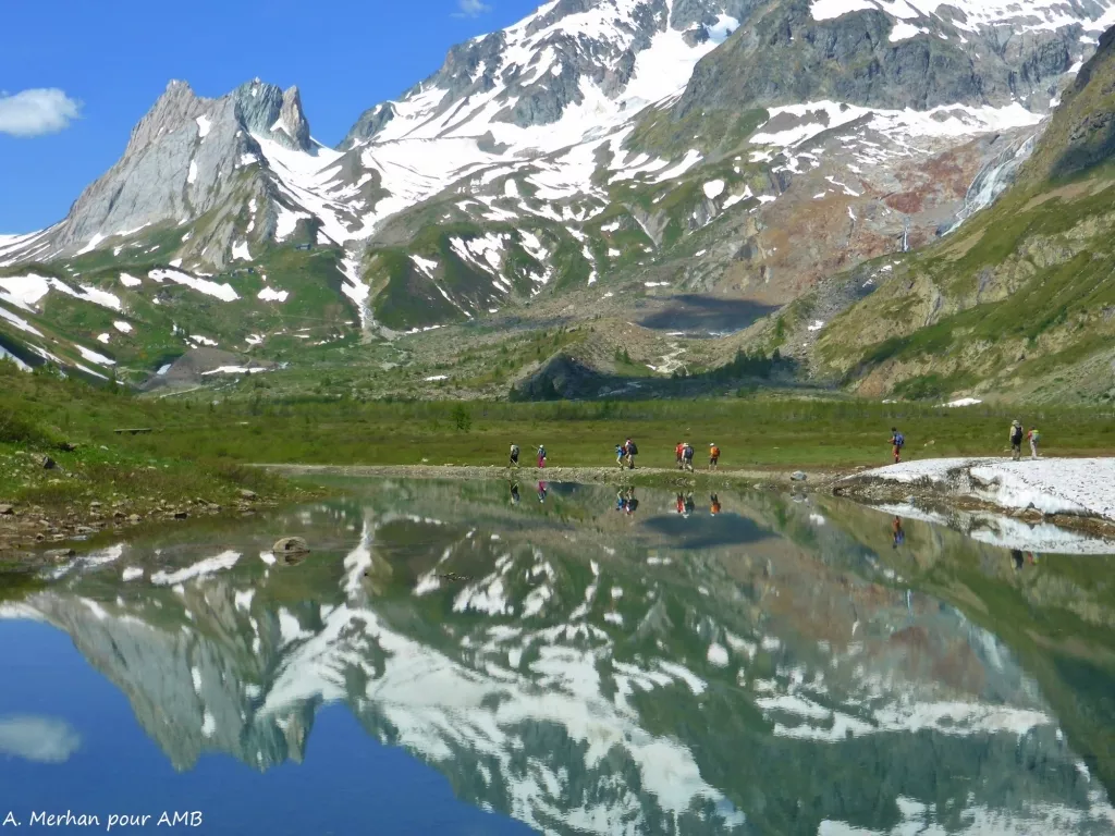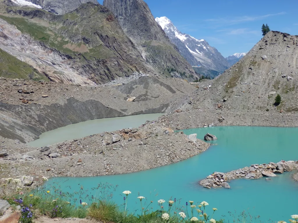 Day in the Val Veny to discover the lac du Miage, nestled in the moraine at the foot of a glacial wall. Depending on the group, return trip to the Elisabetta Soldini refuge nestled under impressive limestone pyramids or hike on the Grand Balcon Sud du Mont Blanc to the Col Chécrouit, where unreal Himalayan profiles are revealed. Return to the hotel by bus.