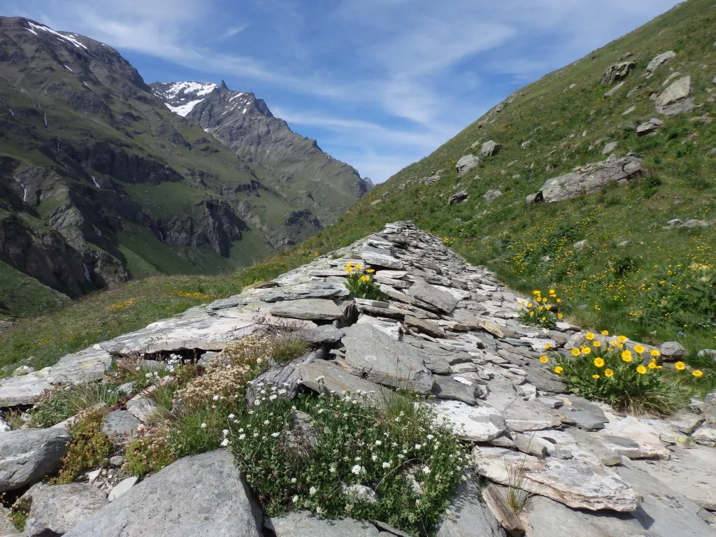 Level ***: variants are proposed reach passes between 2800m and 3000m. Elevation: 800m to 1300m. A few steep passages are possible, secured, as well as some aerial or technical passages mainly at the beginning of the season with the crossing of residual snow. The paths are well marked or marked by cairns at the approach of some passes.