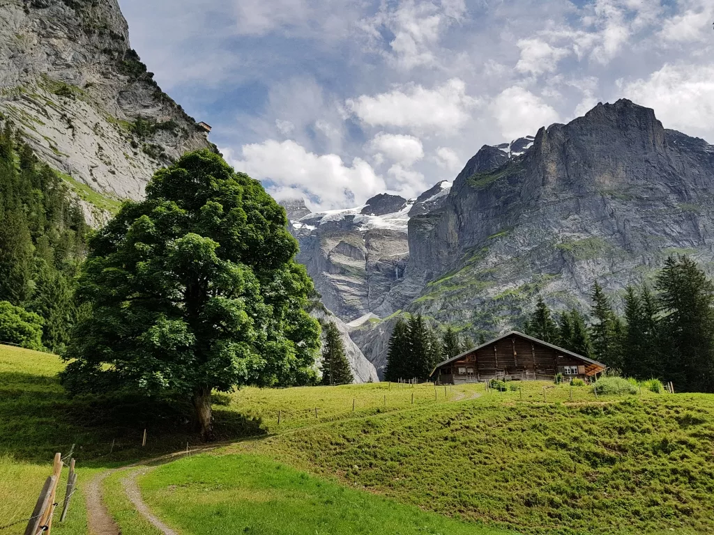 After a descent by cable car on Stechelberg, the day begins between the steep cliffs of the Lauterbrunnen valley, along the spectacular Trummelbach waterfalls. The path then reaches the Petit Sheidegg pass, at the foot of the majestic Oberland giants and leads to the wide Grindelwald valley. A last descent leads to the refuge of Alpiglen for a night as close as possible to the north face of «l'Ogre»! Night in refuge, in dormitory.