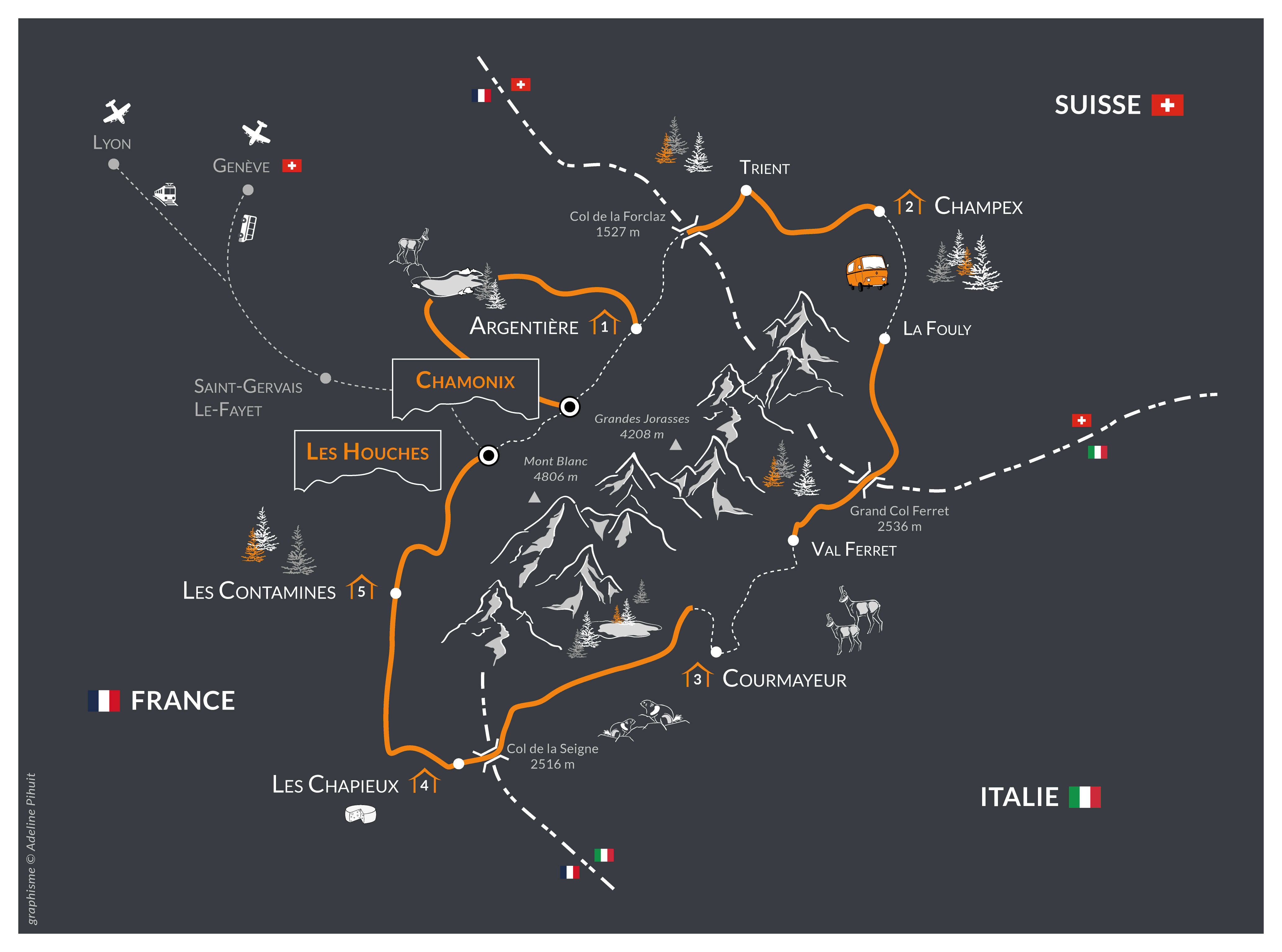 7 hours by car to Chamonix.