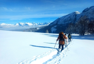 Equipment for snowshoeing (snowshoes and sticks) is provided. You can nevertheless bring your own if you have it. Safety equipment (arva, excavator and probe) is also provided for the group.
