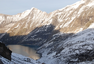 The adventure begins with a bus transfer followed by an alpine lift to reach the start of the route at Lake Mooserboden. A well-defined moraine ridge then opens the way to the alpine highlands. The ascent under the Kapruner Törl becomes more demanding, carried by unstable slabs. The trail finally plunges into the Übelkar cirque, runs alongside the Vorderes Eisbichl, then joins the turquoise waters of Lake Tauernmoosee before reaching the overnight accommodation overlooking the Weisssee.