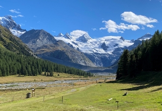 Découverte du sauvage Val Roseg avec en paysage de fond le glacier éponyme. Montée au Fuorcla Surlej offrant un dernier coup d’œil immanquable sur les cathédrales de pierre et de lumière de la Bernina. Descente sur St-Moritz avec une vue magnifique sur les lacs bordant la perle de l’Engadine.