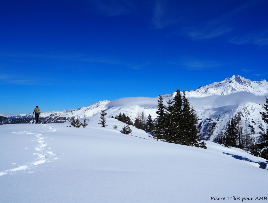 Depuis le plan de la croix à 1450m d’altitude, nous marchons entre forêt et alpage, face au massif du Mont Blanc, avec vue sur l’Aiguille de Bionnassay et les dômes de Miage. Ce panorama sur le Val Montjoie est éblouissant ! Quelques empreintes dans la neige, nous mènent jusqu’à la Croix de Porcherey où la séance de yoga en nature est vivifiante. Après un dernier pique-nique convivial, nous regagnons en douceur le plan de la croix et clôturons ce week-end régénérant.