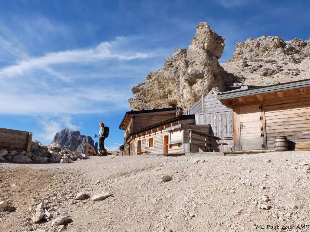 Depuis le refuge, l'itinéraire commence par rejoindre l'altiplano de Sciliar, avec la possibilité d'un aller-retour au sommet du Mont Petz afin de profiter d'une dernière vue à 360° sur les Dolomites de Bolzano. Le retour sur l'Alpe de Siusi se déroule ensuite avec une descente en douceur qui permet d'apprécier encore une fois le savoir-faire exceptionnel des Ladins dans l'aménagement des voies de circulation à travers leurs montagnes.