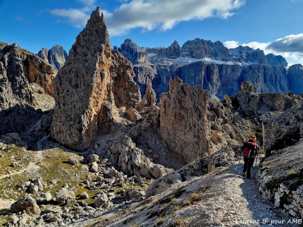 - Traversée de massifs au décor digne de film fantastique, Rosengarten, Sasso Lungo, Sciliar...