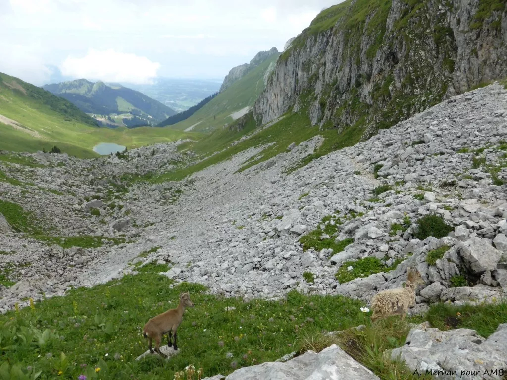 La journée commence à travers bois, le long des cascades du Rouget, de la Pleureuse et de la Sauffaz. Montée à l’alpage d’Anterne au cœur de la réserve naturelle de Sixt-Passy, un vaste et haut plateau où se niche l’un des plus beaux lacs de la région. C'est le royaume des marmottes et du gypaète barbu ! Concours de ricochets suivi d'une petite grimpette jusqu’au col d’Anterne, puis descente sur le refuge de Moëde-Anterne. Nuit en dortoir sans les bagages et sans douche.