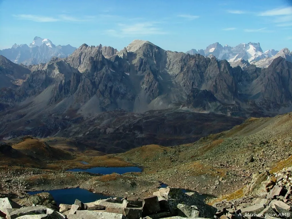 Au pied du massif culminant de la Haute-Ubaye, le Chambeyron (3412m), montée facile par le vallon du col Mary et sa multitude de lacs qui parsèment allègrement ces pâturages encore bien exploités. Du col, passage en Italie, dans le Piémont, pour rejoindre le Val Maira et le magnifique village de Chiappera.