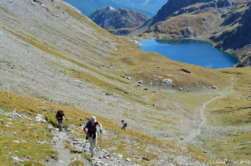 Du dernier hameau de la haute vallée du Guil, montée le long de la frontière italienne, du vallon de Bouchouse qui constitue une réserve de biotope. Passage aux lacs Egorgeou, Foréant puis au col Vieux (2806m) pour rejoindre le Col de Chamoussière. Direction la vallée de l’Aigue Blanche pour atteindre le refuge de la Blanche, au bord du lac, blottis au pied de la Tête des Toilies.