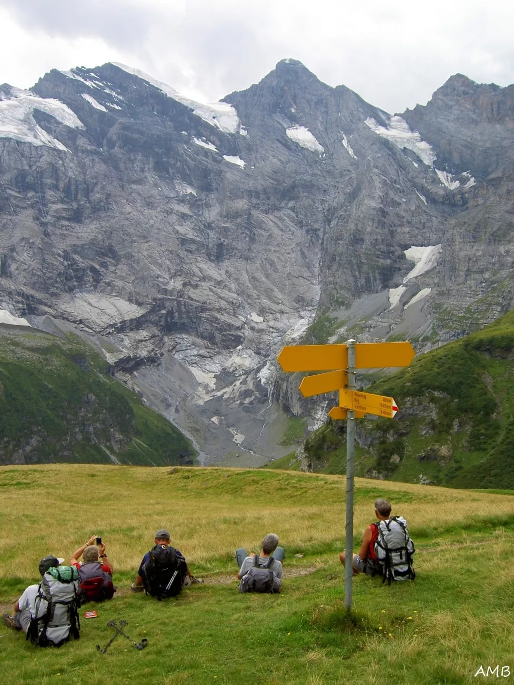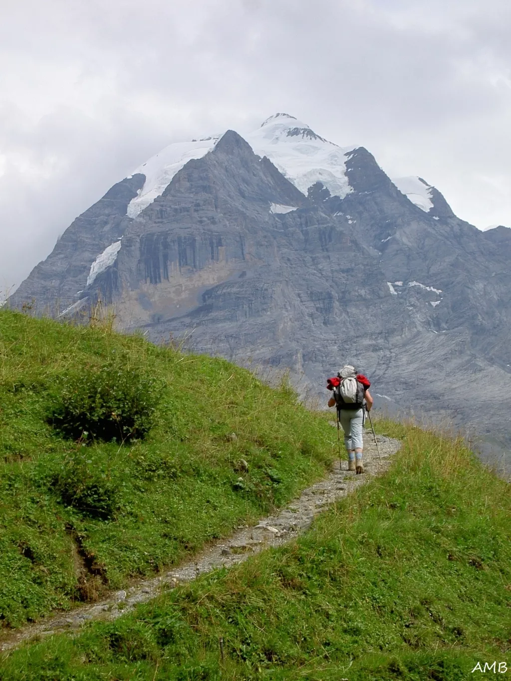 Etape splendide pour cette journée qui démarre dans l’impressionnante vallée de la Gamchi. Les prés laissent progressivement la place à l’ambiance minérale du col de Sefinafurgga (2612m) et l’ascension se termine dans un monde de glaciers et de haute montagne. Panorama extraordinaire sur les sommets emblématiques de la Jungfrau, de l’Eiger et du Mönch qui se dévoilent enfin dans leur totalité et qui accompagnent toute la descente sur Gimmelwald, très beau vieux village d'alpage. Nuit en gîte à Mürren, sans les bagages.